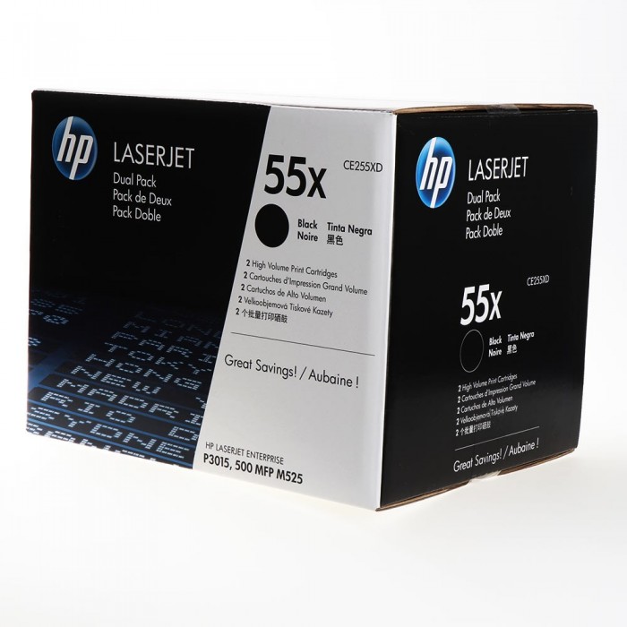 HP Toner 55X CE255XD Black Double Pack for LJ P3015,M525MFP
